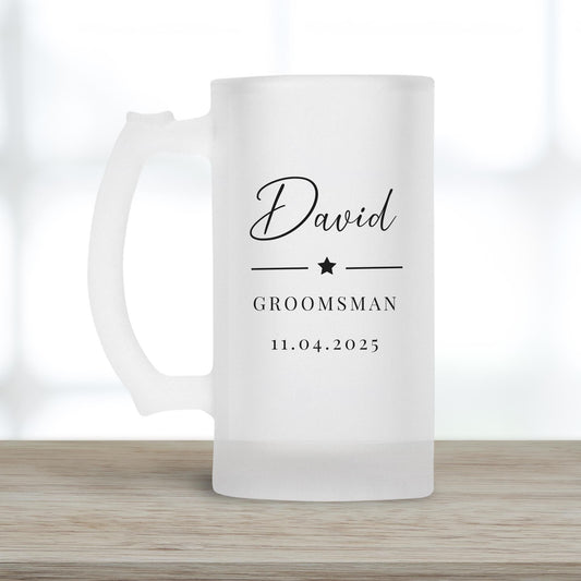 Personalised Groomsman Beer Stein: Frosted Wedding Party Gift
