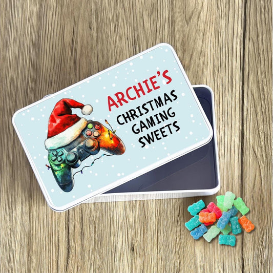 Personalised Christmas Gaming Snacks Tin Xmas Eve Gamer Treats Gift
