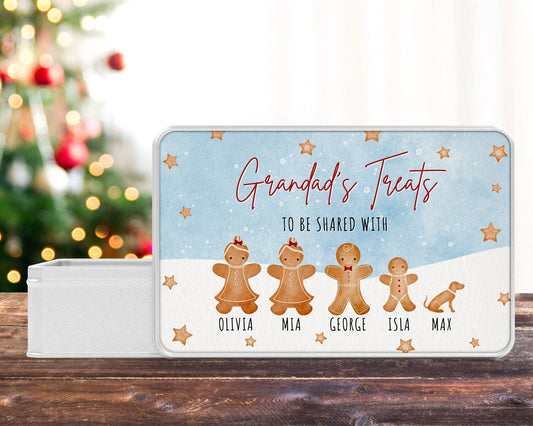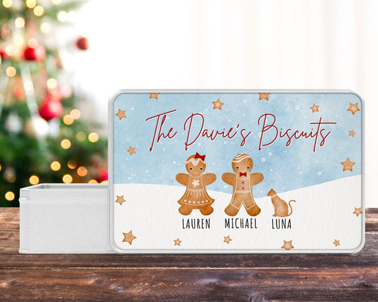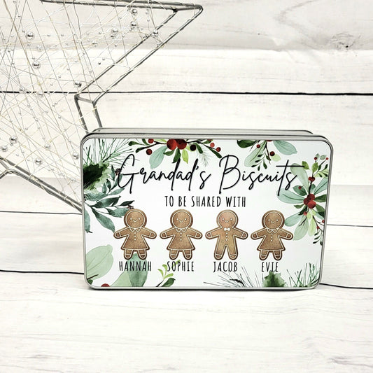 Personalised Christmas Biscuit Tin: Grandparent Gift with Gingerbread Characters