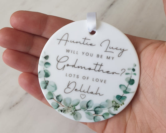 Will You Be My Godmother Ornament Godparents Announcement Personalised Gift Keepsake