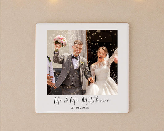 Personalised Wedding Ceramic Photo Tile With Text Couple Gift