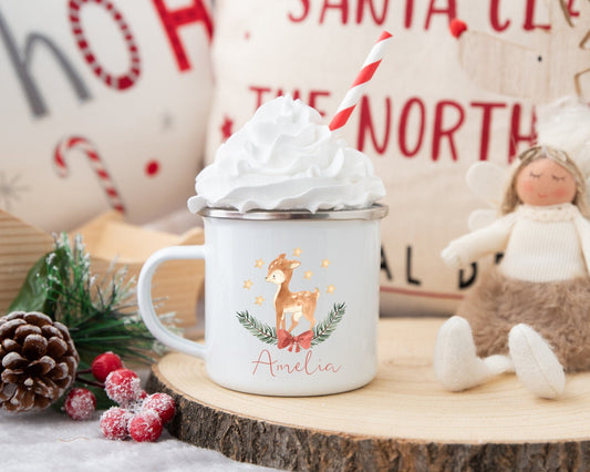 Personalised Children's Christmas Mug - Enamel Kids Xmas Cup - Christmas Eve Stocking Filler Gift