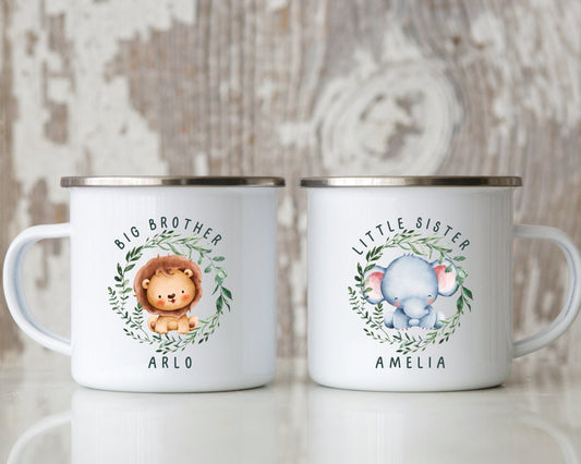 Personalised Children's Mug Enamel Kids Cup Big Brother Sister Gift