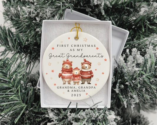 First Christmas As Great Grandparents Bauble Ornament Personalised Family Xmas Decoration Gift