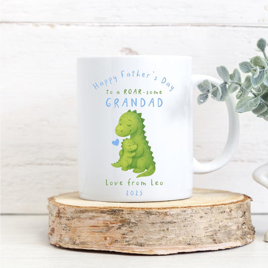 Personalised Father's Day Mug: Super Daddy Dinosaur Gift