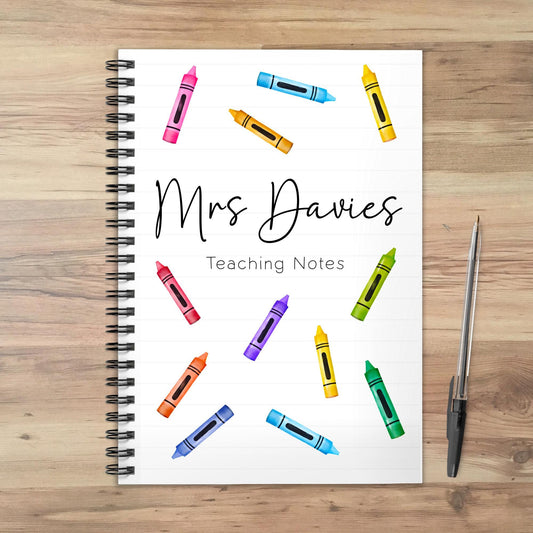 Personalised Teacher Notebook: End of Term Gift, Crayon Design