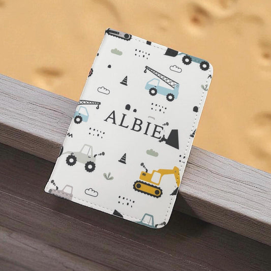 Personalised Passport Cover Kids Diggers Construction Boys Girls Travel Documents Holder Gift