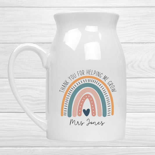 Personalised Teacher Vase - End Of Term Gift - School Teaching Staff - Thank You For Helping Me Grow - Ceramic Flower Jug