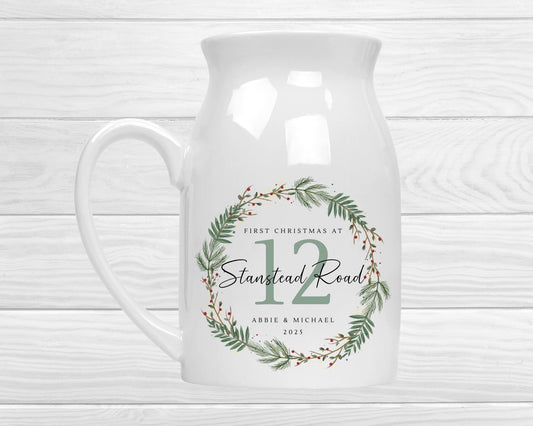 Personalised New Home Christmas Vase - Moving House Keepsake - Ceramic Flower Jug Gift - First Christmas In New Home - Housewarming Gift